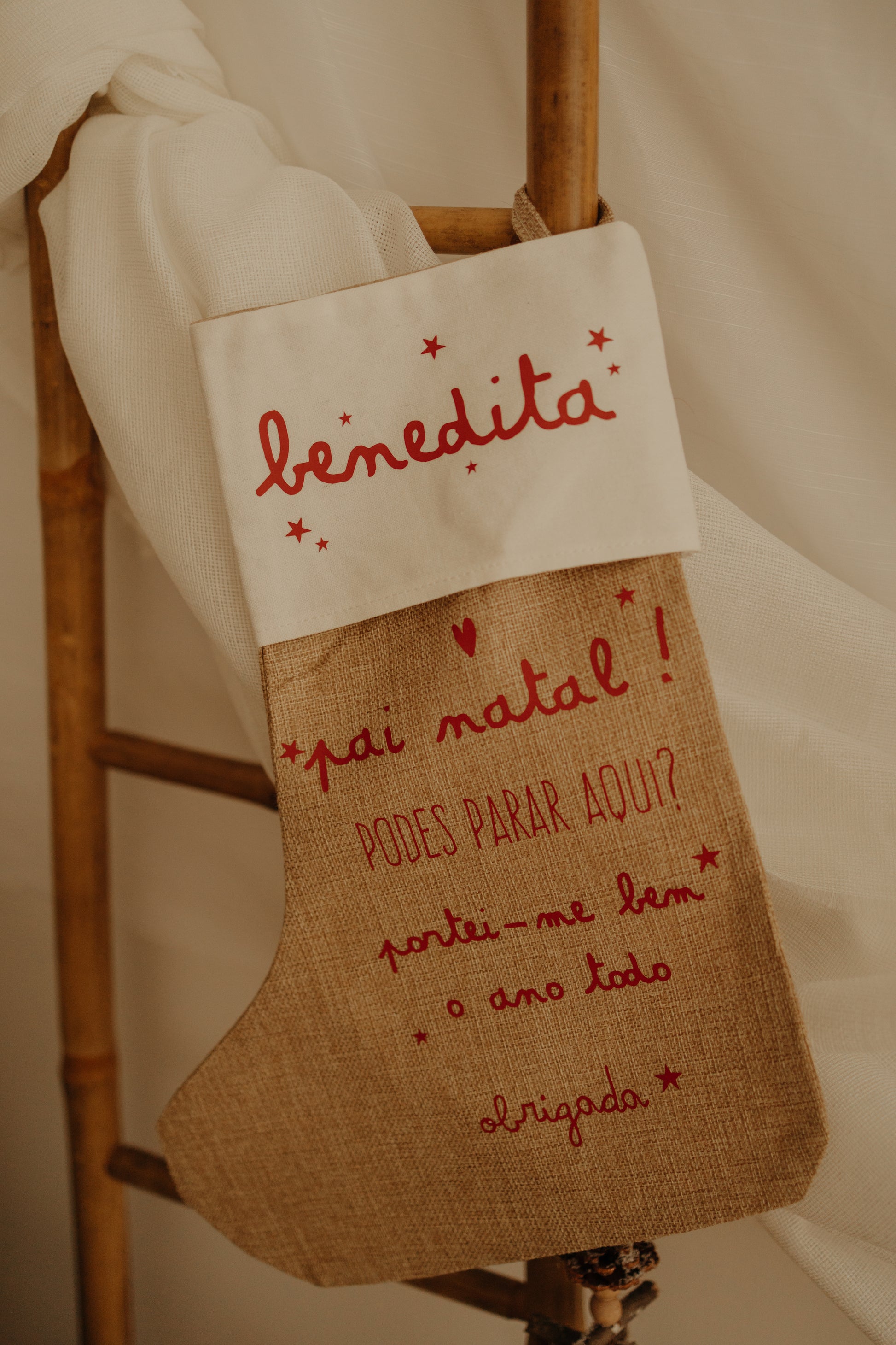 Colocamos na lareira ou algo próximo para que o Pai Natal possa colocar um miminho no interior.