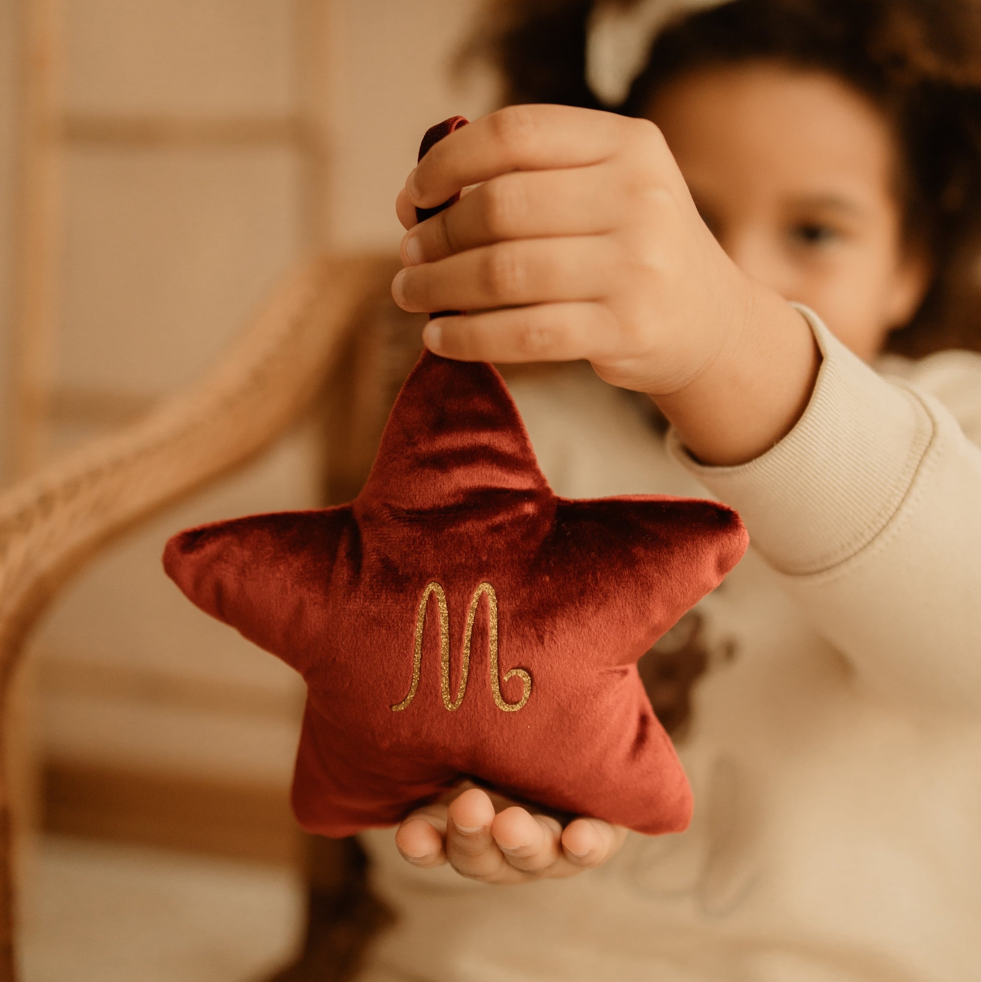 Em veludo bordeaux, poderá estar nela presente o nome ou a inicial ou a frase “O meu primeiro Natal” — e com ela, todo o amor de uma época que se quer guardar para sempre.