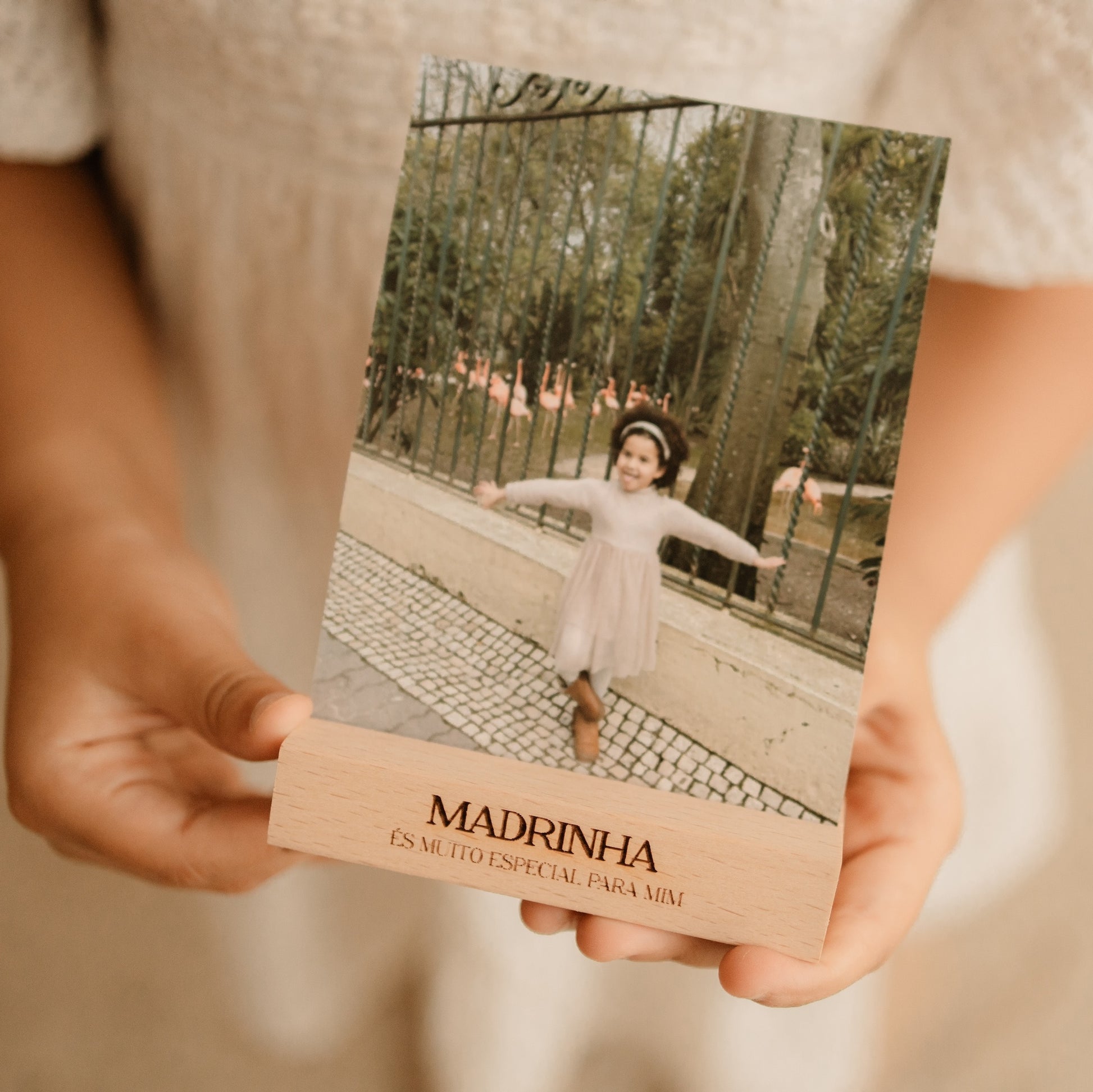 Este porta retrato em madeira é um presente cheio de carinho, pensado para os padrinhos que são sempre tão especiais.